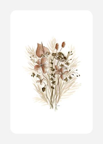 Leuke ansichtkaart met afgeronde hoeken en sfeervolle tekening van een bos bloemen.