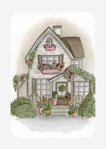 Leuke ansichtkaart met afgeronde hoeken en afbeelding van een sfeervol huisje.