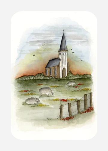 Leuke ansichtkaart met een sfeervolle afbeelding van een kerkje.