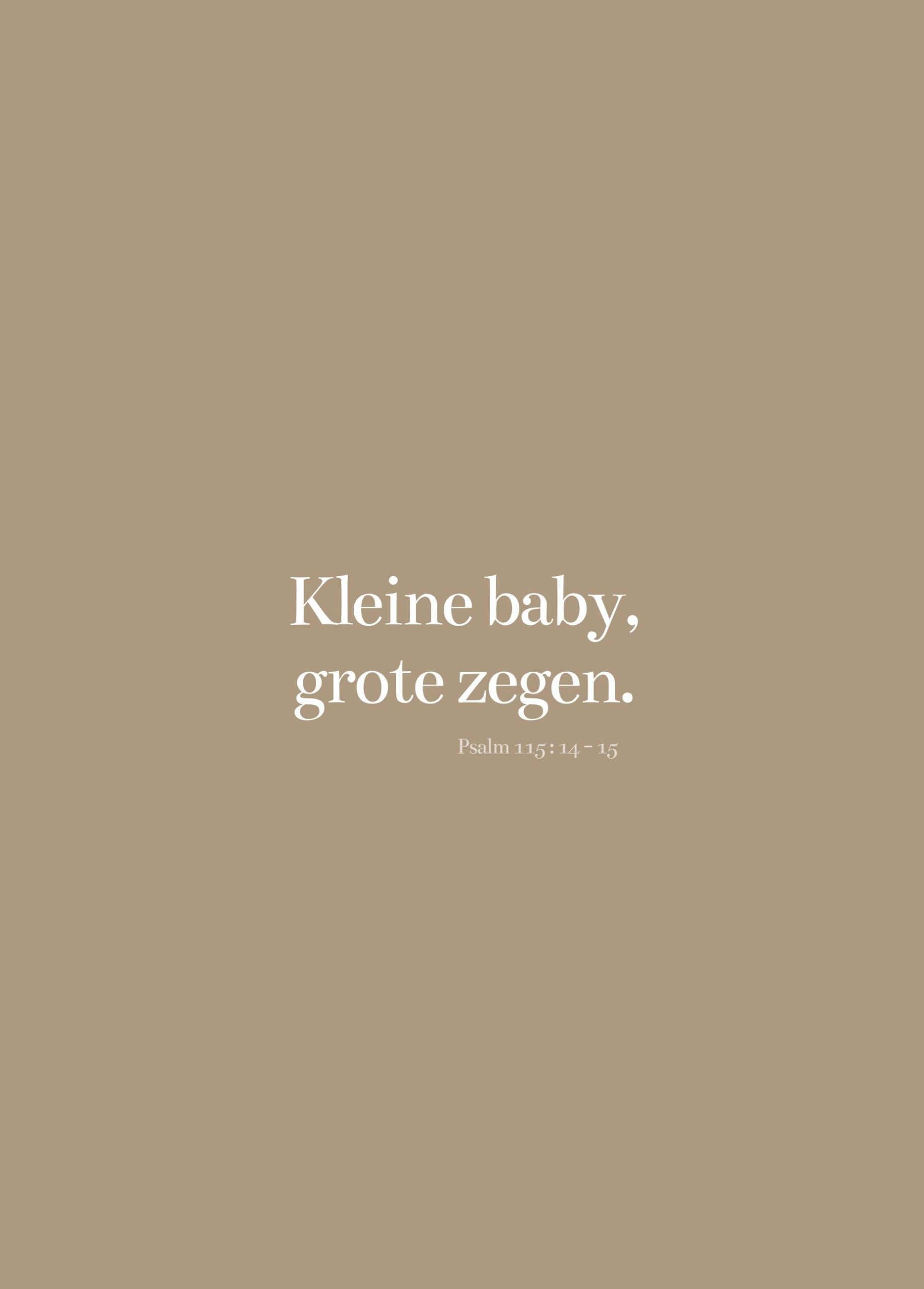 Met tekst: Kleine baby, grote zegen. Psalm 115:14 en 15.