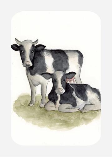 Leuke ansichtkaart met afgeronde hoeken en sfeervolle tekening van twee koeien.