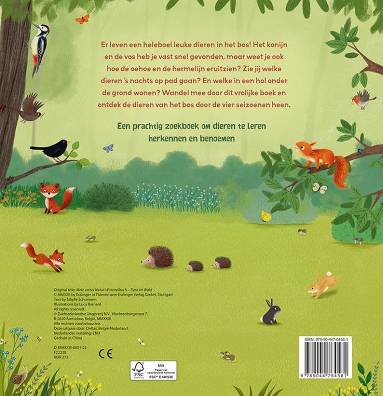 Op elke pagina wandel je als het ware in het bos door de vier seizoenen heen. Door de leuke zoekopdrachten kan je kind ontdekken hoe de oehoe en de hermelijn eruitzien, welke dieren 's nachts op pad gaat en wie er in een hol onder de grond woont. Veel kijk- en zoekplezier!