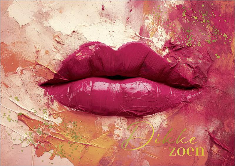 Mooie dubbele kaart met rode lippen en tekst Dikke zoen.