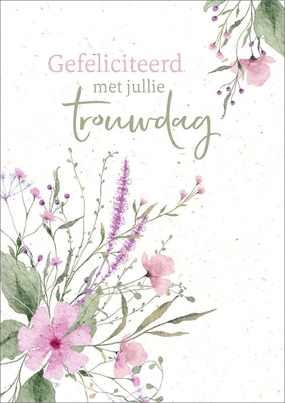 Mooie kaart met bloemen en de tekst: Gefeliciteerd met jullie trouwdag.
