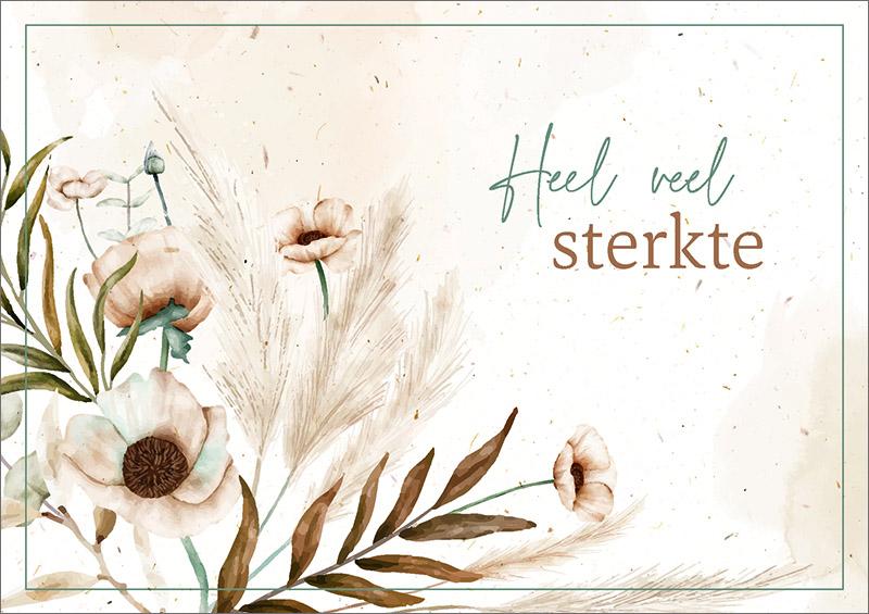 Mooie natuurlijke kaart met bloemen en tekst: Heel veel sterkte