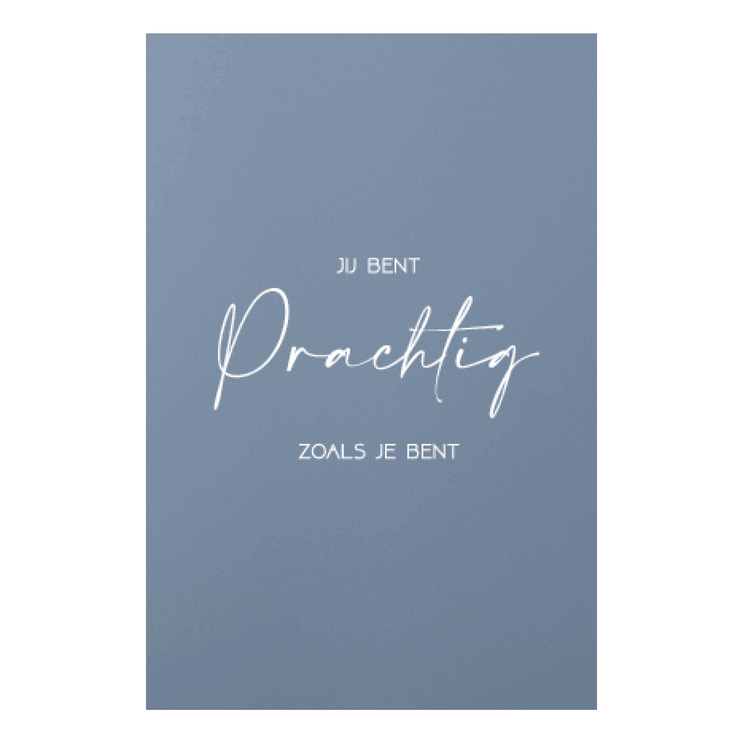 Mooie grijsblauwe wenskaart met tekst: Jij bent prachtig zoals je bent.