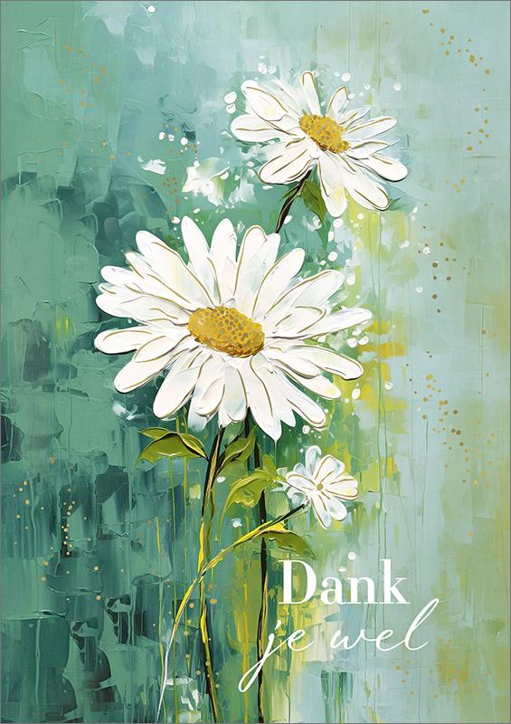 Mooie groene kaart met bloemen en tekst: Dank je wel