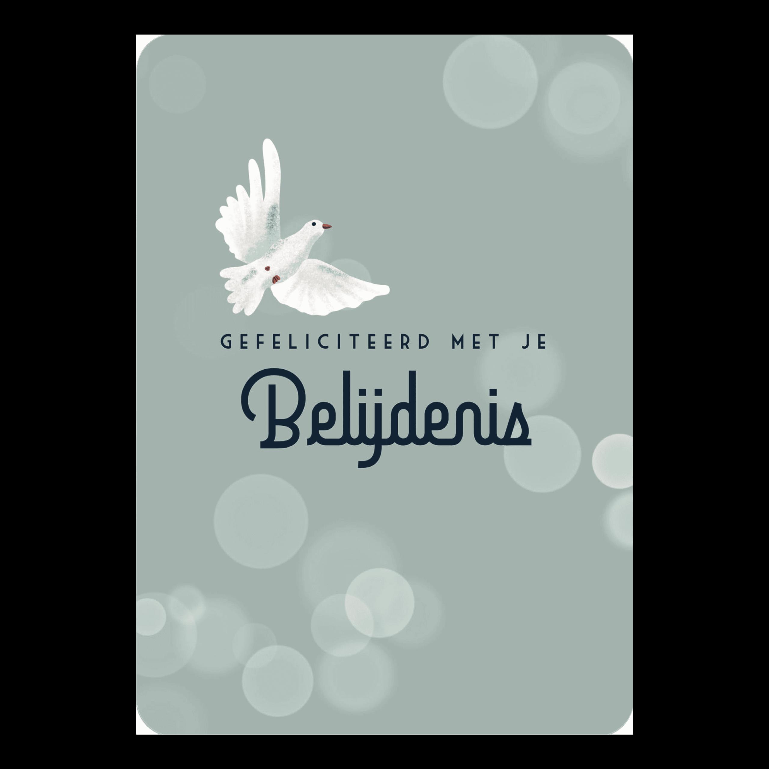 Met afbeelding van een duif en de tekst: Gefeliciteerd met je belijdenis.