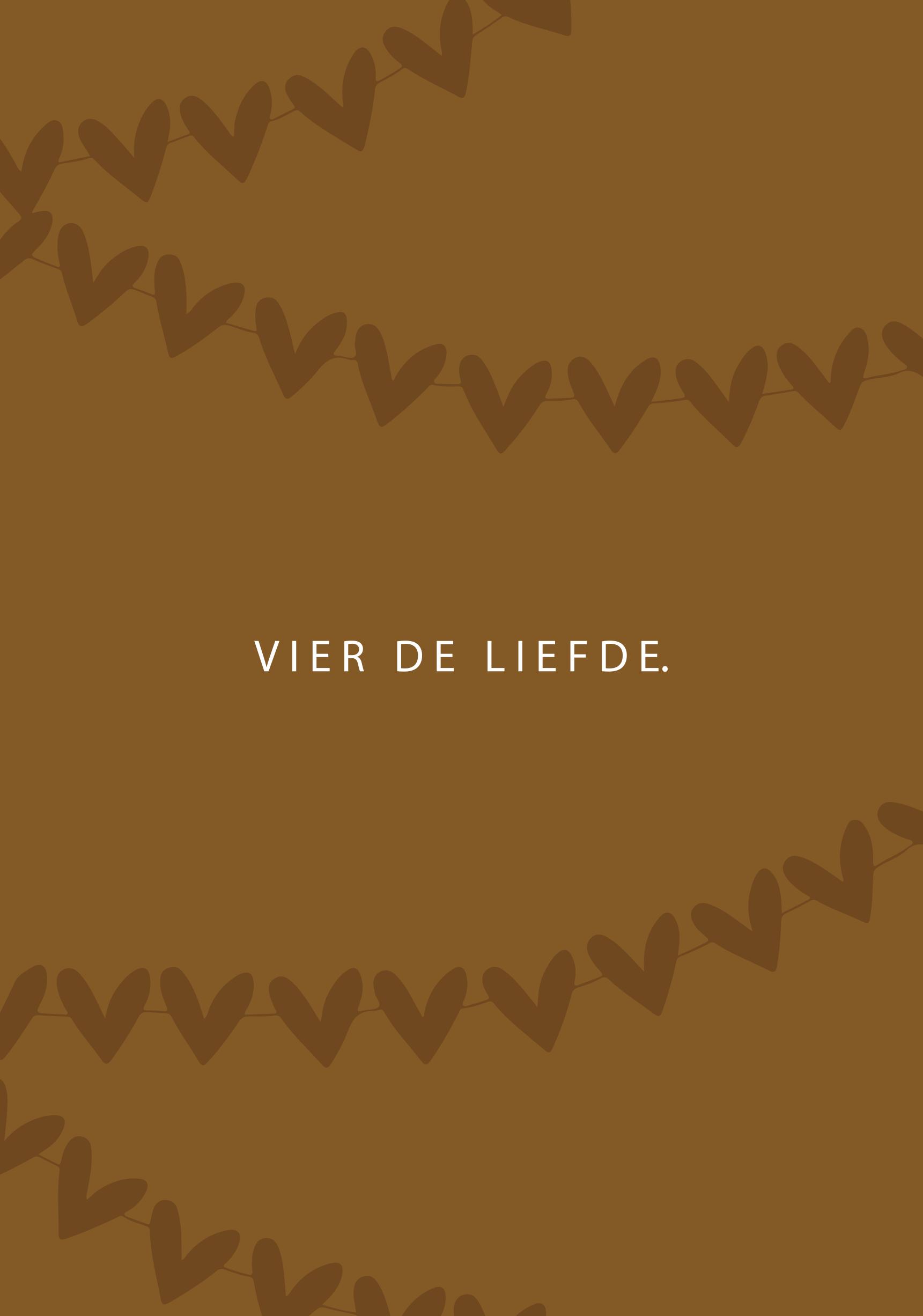 Mooie ansichtkaart in bruin met vlaggetjes en de tekst: Vier de liefde.