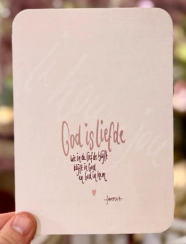 Mooie kaart in roomwit met tekst: God is Liefde…