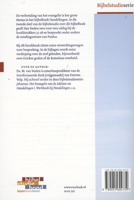 Bij elk hoofdstuk zitten extra verwerkingsvragen voor bespreking. In de bijlagen wordt extra verdieping over de stof geboden, bijvoorbeeld over Griekse goden of de Romeinse overheid.over de auteur:Ds. M. van Veelen is emerituspredikant van de Gereformeerde Kerk (vrijgemaakt) van Duiven- Velp. Hij schreef eerder in deze bijbelstudieserie: Johannes. Het Evangelie van de Adelaar en Handelingen I. Werkboek bij Handelingen 1-12.