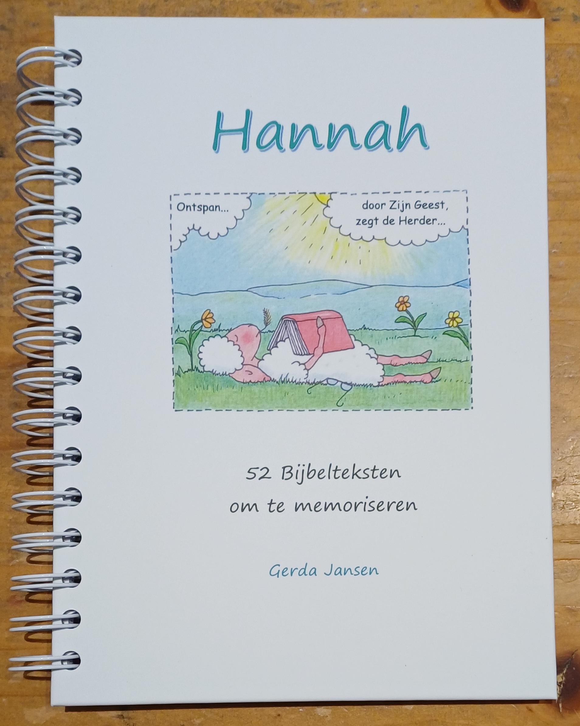 Dit boekje bevat 52 Bijbelteksten met tekeningen van het schaapje Hannah. Het boekje is ontworpen en uitgebracht door Gerda Jansen en de opbrengst gaat naar Open Doors.