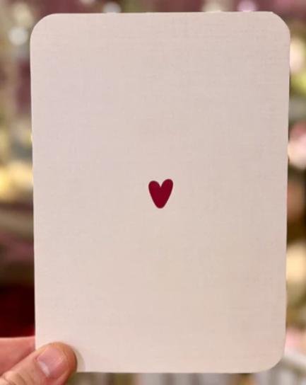 Mooie ansichtkaart in roomwit met een wijnrood hartje.