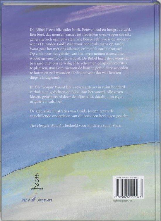 In Het Hoogste Woord laten zeven auteurs in ruim honderd verhalen en gedichten de Bijbel aan het woord. Alle zeven kiezen, geïnspireerd door de bijbeltekst, daarbij hun eigen originele invalshoek.