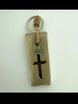 Houten Sleutelhanger met afbeelding van het kruis.