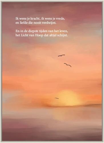Enkele kaart Ik wens je kracht, ik wens je vrede en liefde die nooit verdwijnt. En in de diepste tijden van het leven, het Licht van Hoop dat altijd schijnt.