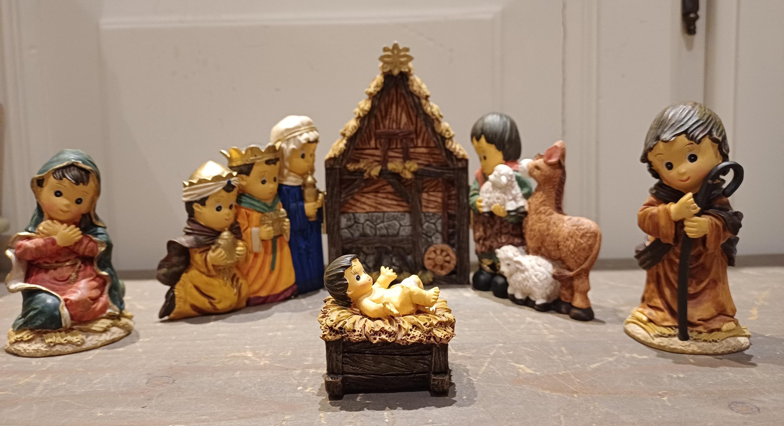 Leuke kerststal voor kinderen met 2 losse kinderfiguurtjes en kribbe met Jezus. De kersttal heeft 2 scharnieren, waardoor je hem op verschillende manieren kunt neerzetten.