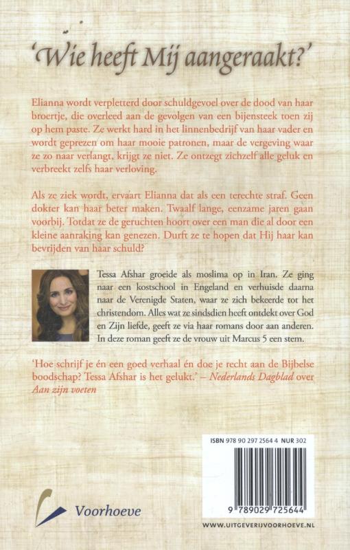 'Wie heeft Mij aangeraakt?' Elianna wordt verpletterd door schuldgevoel over de dood van haar broertje, die overleed terwijl zij op hem paste. Ze werkt hard voor haar vader en haar mooie tapijtpatronen brengen zijn zaak veel goeds, maar de vergeving waar ze zo naar verlangt, krijgt ze niet. Ze ontzegt zichzelf alle geluk en als ze ziek wordt, ervaart ze dat als een terechte straf. Geen dokter kan haar beter maken. Twaalf lange, eenzame jaren gaan voorbij. Totdat ze de geruchten hoort over een man die al door een kleine aanraking kan genezen. Heeft ze de moed? Kan Hij haar bevrijden van haar schuld?