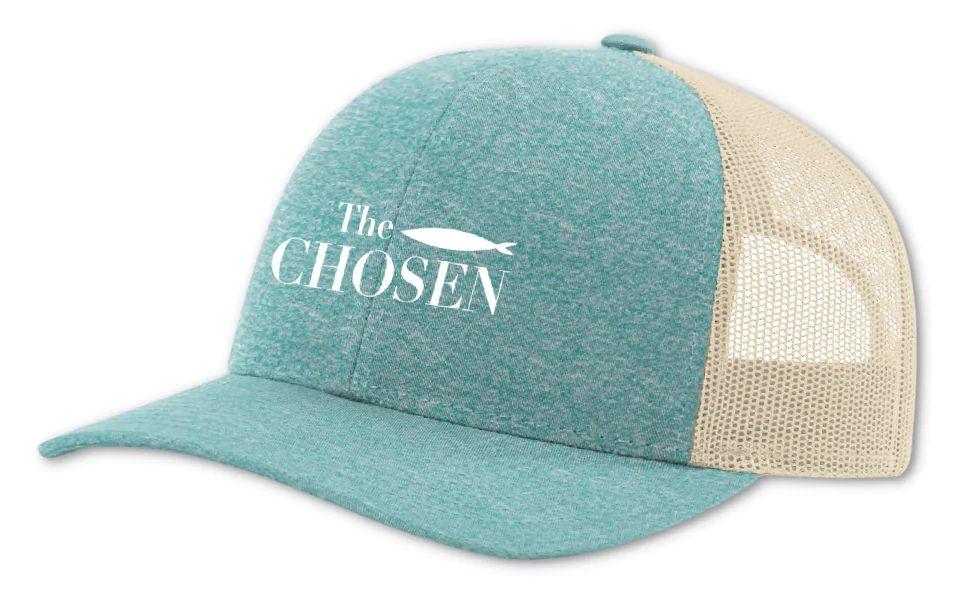 Met ons iconische vissymbool, is deze ‘Chosen teal’-editie (groenblauw) van onze truckerspet niet alleen comfortabel en aantrekkelijk, maar het helpt ook het woord te verspreiden over je favoriete serie.