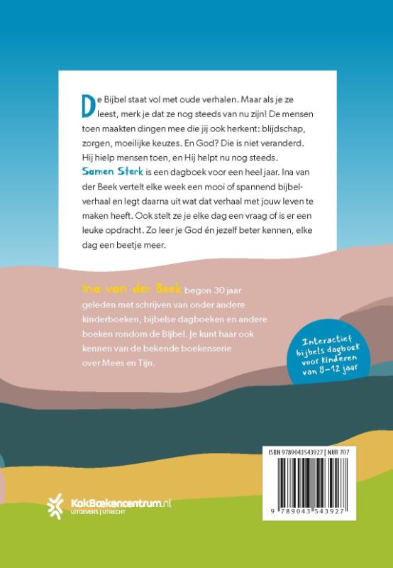 'Samen sterk. Mijn dagboekreis met God' van Ina van der Beek is een interactief en leerzaam dagboek voor kinderen van 8-12 jaar. Elke week werk je een bijbelverhaal door uit het Oude of Nieuwe Testament. Naast de overdenking is er zowat elke dag een opdracht, gebed of vraag. Er wordt gebruikgemaakt van de Bijbel in Gewone Taal. Dit dagboek verscheen eerder onder de titel 'Oeroud & springlevend' en is volledig herzien.