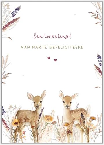 Mooie wenskaart om te sturen als er een tweeling is geboren.