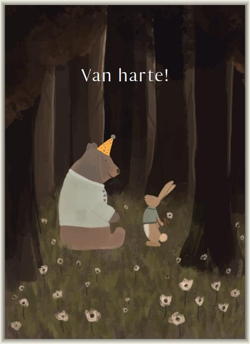 Enkele kaart Van harte met beer en konijntje