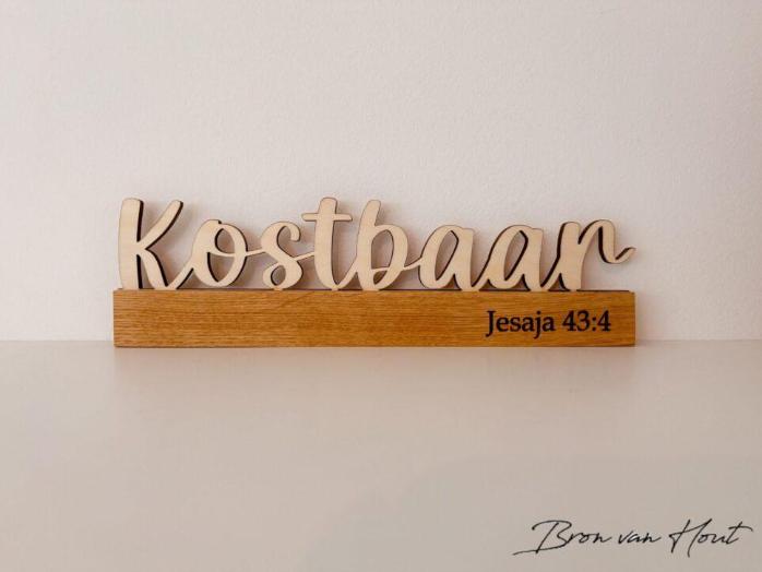 Deze handgemaakte houten standaard brengt een statement van geloof in een eenvoudig, stijlvol ontwerp. Uitvoering: Kostbaar.