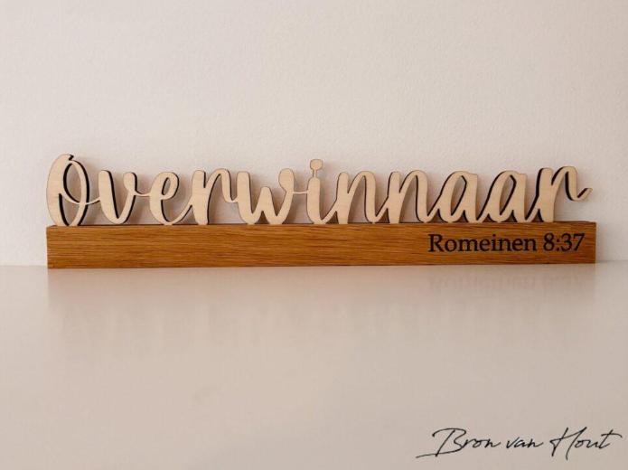 Deze handgemaakte houten standaard brengt een statement van geloof in een eenvoudig, stijlvol ontwerp. Uitvoering: Overwinnaar
