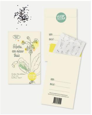 De Gulden Sleutelbloem heeft de symbolische betekenis 'kostbaar bezit'. Op de achterzijde kan je de naam van de ontvanger schrijven en de reden waarom je het zadenzakje geeft. Een mooi cadeau om te geven en te krijgen.