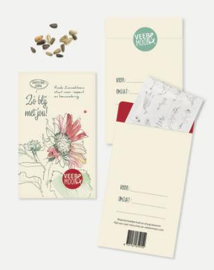 De Rode Zonnebloem staat voor 'respect & bewondering'. Op de achterzijde kan je de naam van de ontvanger schrijven en de reden waarom je het zadenzakje geeft. Een leuk cadeautje om te geven of te versturen.